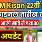 किसानों के लिए बड़ी अपडेट, जानें कब आएगी ₹2000 की अगली किस्त – PM Kisan 22th Kist Date